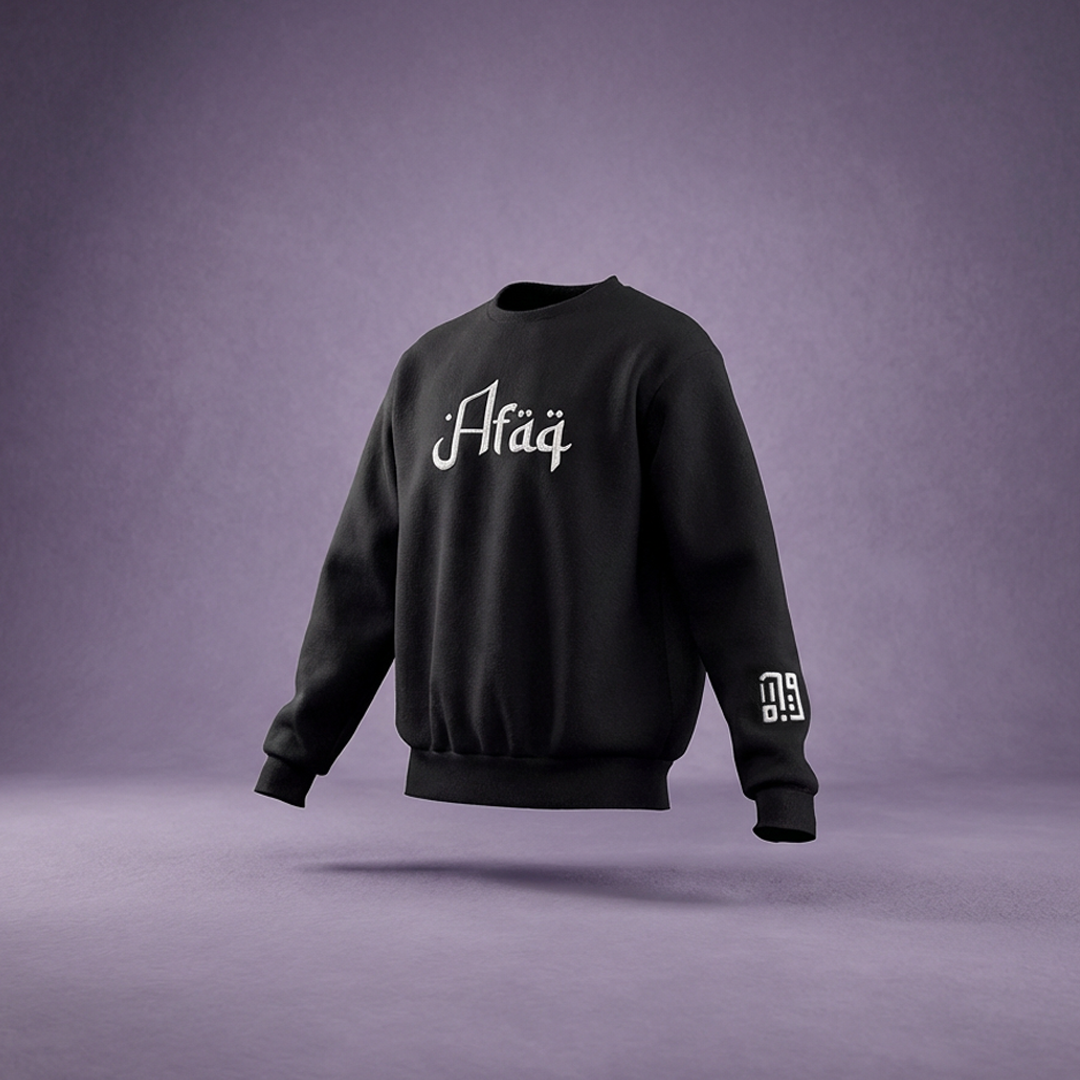 Stay stylish and comfortable with this premium black sweatshirt, featuring a bold Afaq logo at the center of the chest for a clean, modern look. The smaller logo on the right hem adds a subtle touch of branding. Made from soft, high-quality fabric, this sweatshirt is perfect for casual wear and a versatile addition to your wardrobe. Designed for those who appreciate simplicity with a touch of sophistication